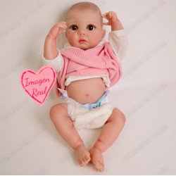 Muñeca fabricada en vinilo de silicona en cuerpo completo ,extremidades de silicona (cabeza, brazos y piernas) , y cuerpo central, no tóxica