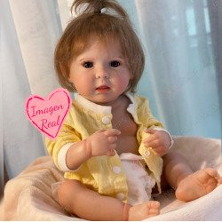 Hermosa muñeca Reborn Raquina, de alta calidad, con ojos grandes y expresivos, cabello rubio suave y peinable